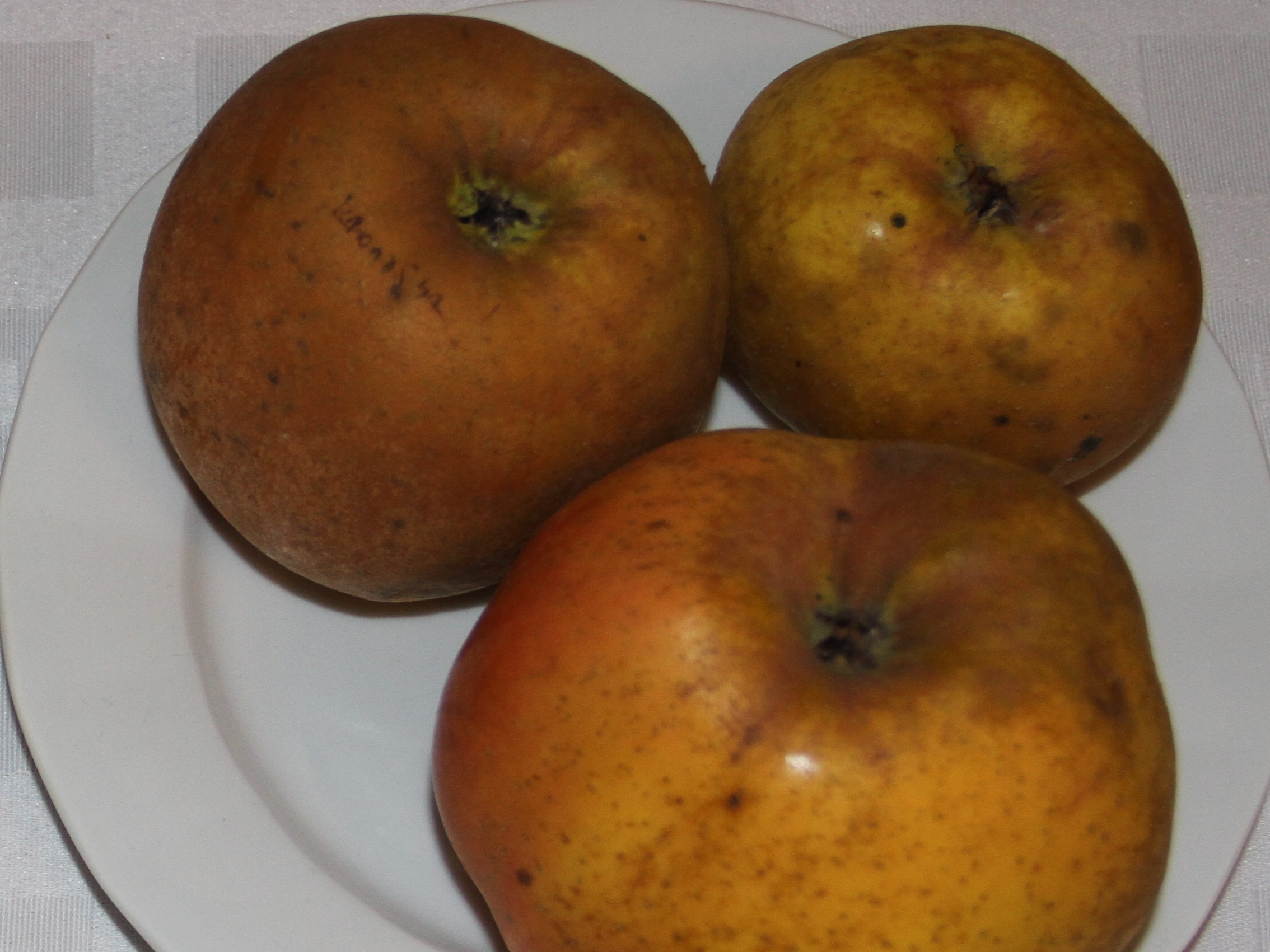 Velmi stará odrůda původem z Francie. Slupka s typickými rzivými tečkami. Zraje v polovině října. Vhodná k sušení.